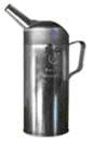 Messeimer aus Weißblech mit Tragebügel, Handgriff und Trichterauslauf für ein ergonomisches Handling. |