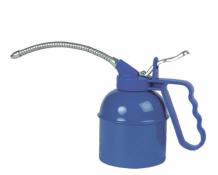 | Ölkanne aus Metall mit eingebauter Pumpe und flexiblen Spritzrohr. |