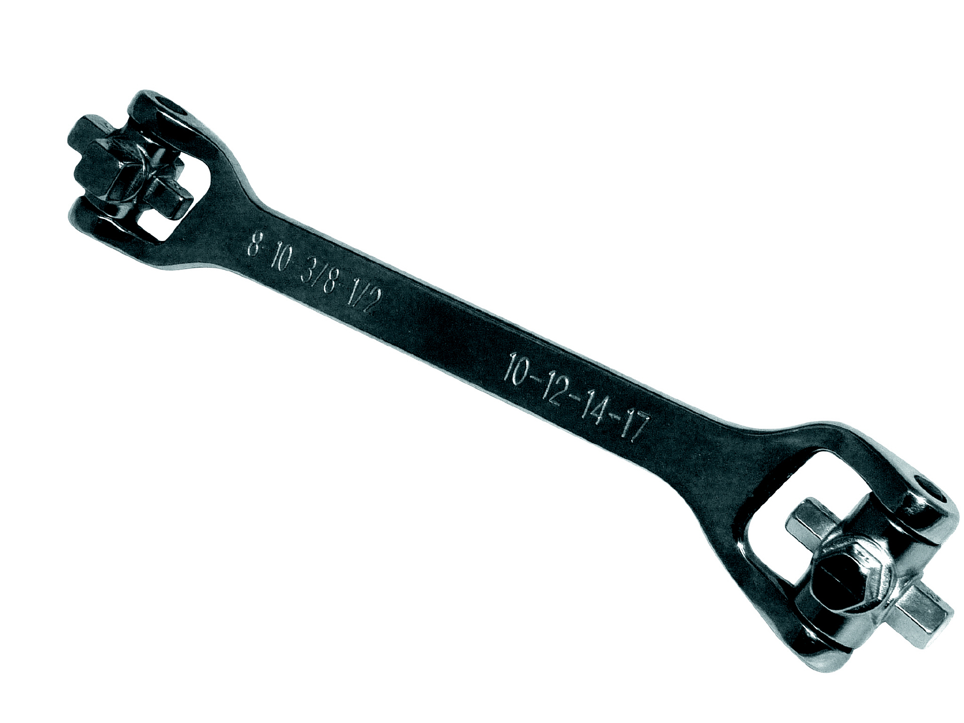 Universal-Ölschraubenschlüssel mit 4 x Vierkant-Einsätzen 8; 10mm / 3/8"; 1/2" und 4 x Sechskant-Einsätze 8; 12; 14; 17 mm |